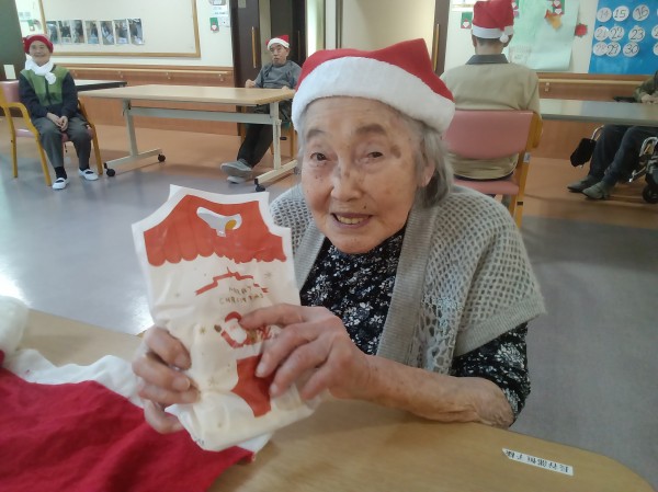 サンタクロースに託されたプレゼントをご利用者様おひとりずつに手渡し。