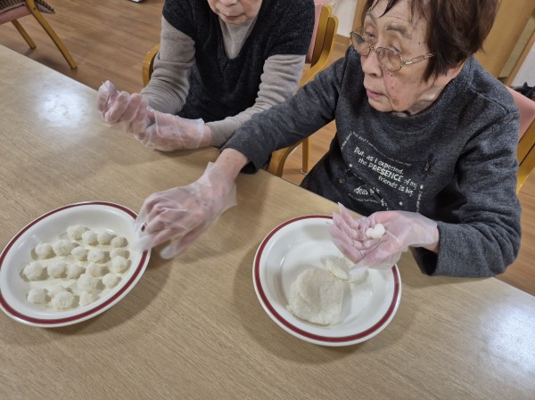 1月〇日は手作りごはん団子を入れたお汁粉を作りました。