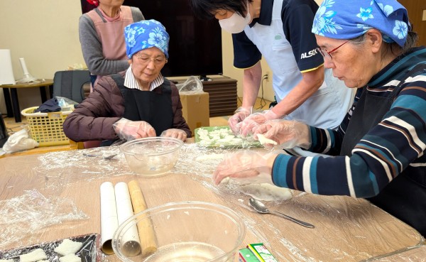 生地がいい感じになってきたら、お餅の形に切っていきます☆