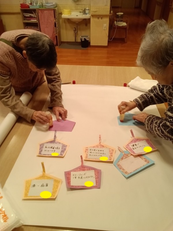新年を迎え、ご入居者と職員で絵馬作りを行いました。