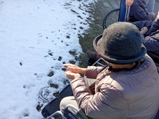 その時の雪が残っていました!! 皆さん雪玉を作っています♪