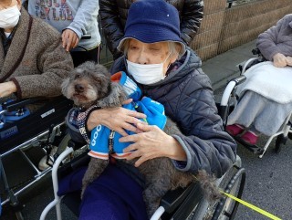 なんと職員さんのご家族でした! ワンちゃんを抱っこさせてもらいながら
