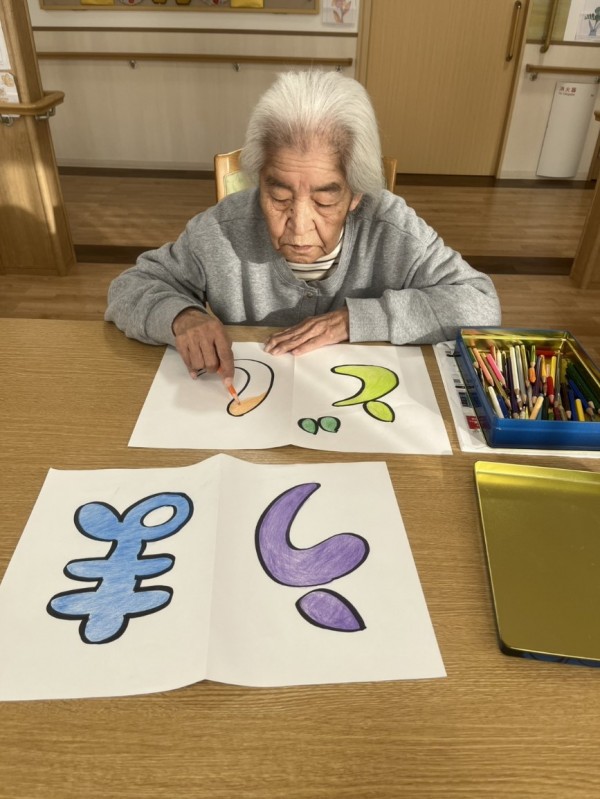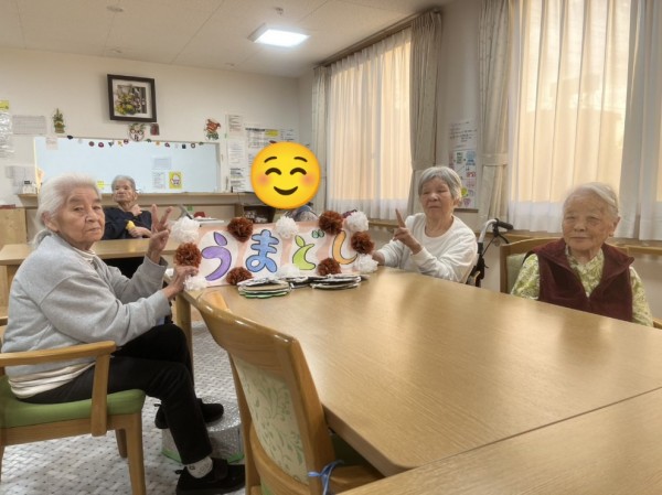 地域運営推進会議・家族会の看板をご利用者様と一緒に考えながら作りました♪今年最初の会なので「干支にしましょう」と直ぐに決定!花紙でお花を作って下さるご利用者様「馬らしさを表現したいね」と話し合いながら茶色を使ってみました(^^)「文字は華やかにしたいわね」とカラフルに塗って下さいました♪