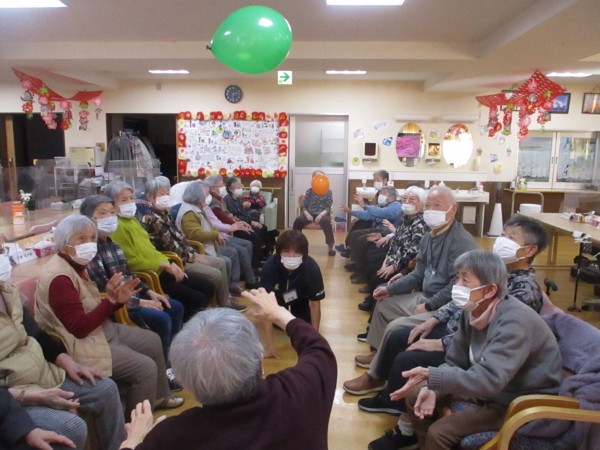 座位のまま行える棒サッカーは、腕や肩をしっかり動かしながら、集中力や反応力、チームワークも養えるレクリエーションです。とても盛り上がり、笑顔あふれる時間となりました♪