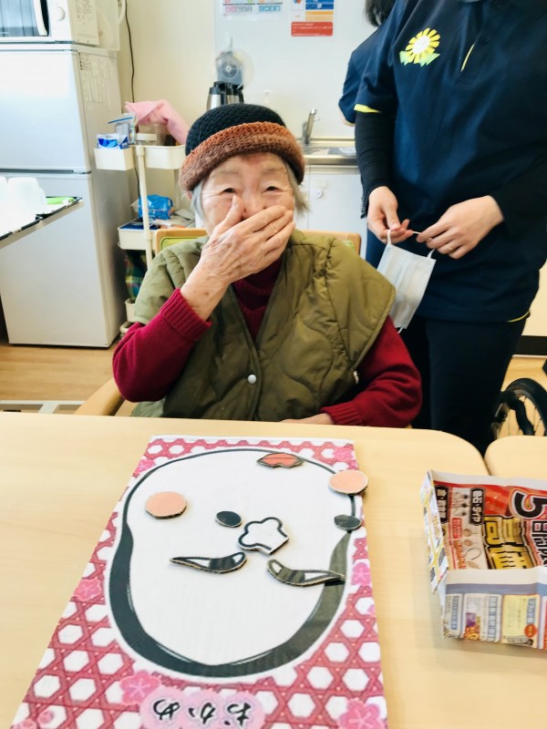 先日、1階のご利用者様には福笑いに挑戦していただきましたー!
