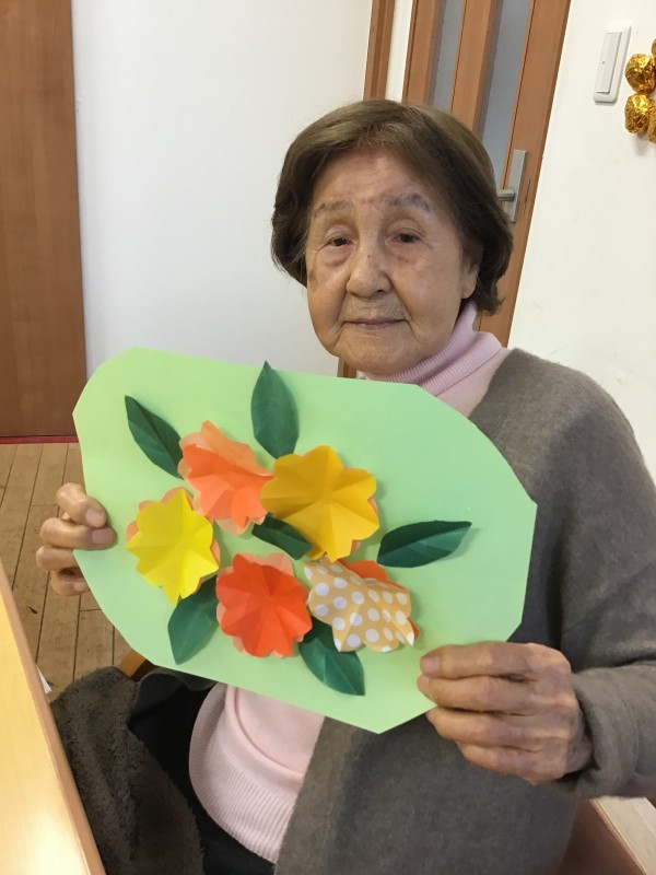 お花が出来たら、台紙に貼ってみましょう!