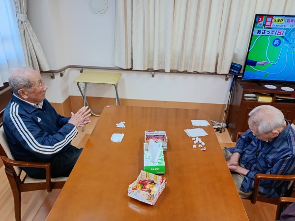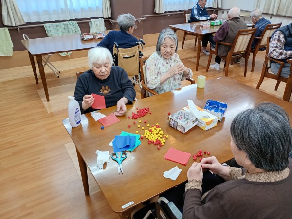 お正月も終わり次は2月の壁飾りの制作を始めました。