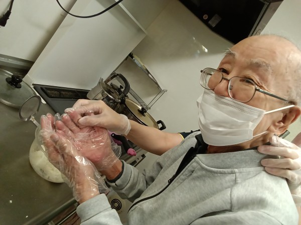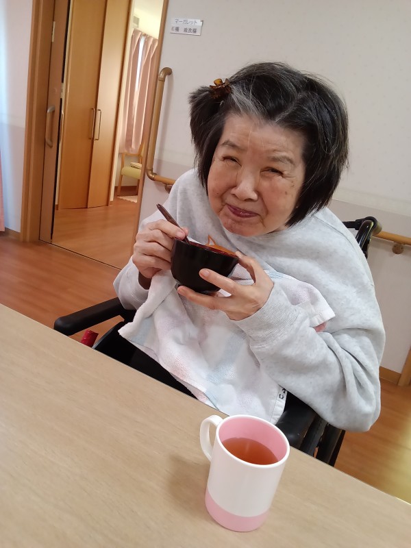 利用者様にもお汁粉作りを手伝って頂きました。白玉を丸める手つきが熟練していて素晴らしかったです。