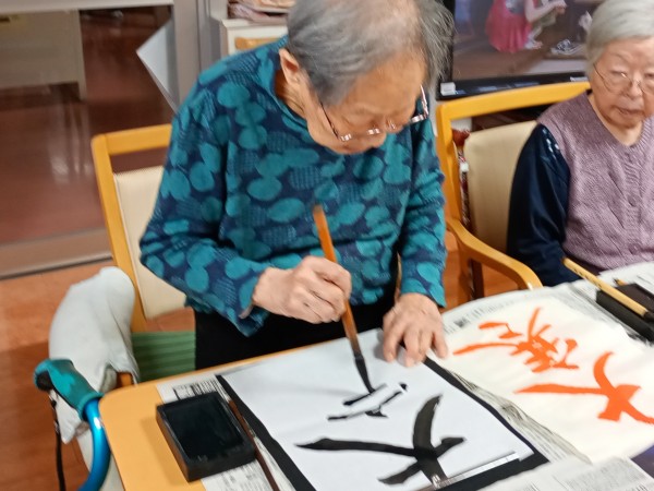真剣なご様子で筆を運ばれていました。
