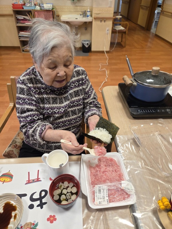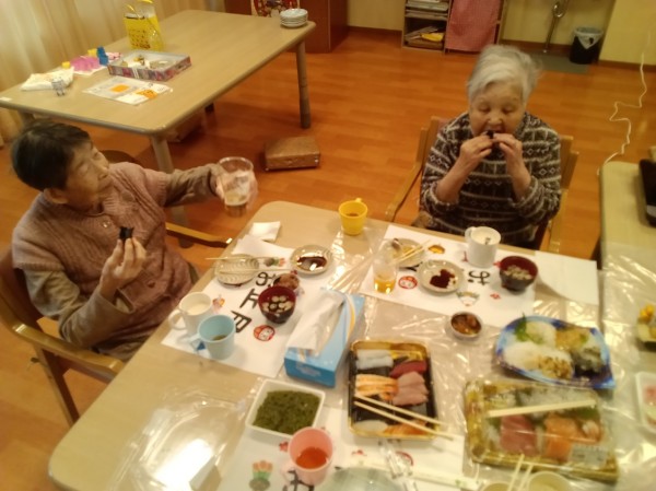 ご入居者と職員で手巻き寿司レクを行いました!