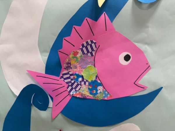 この壁画は、海で泳いでる鯛をイメージし、作成しました(^^)/