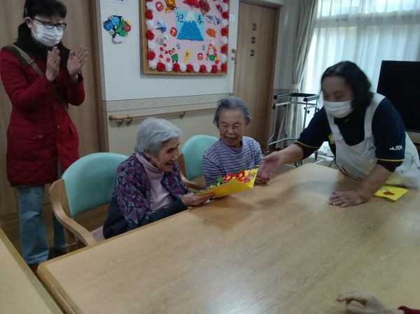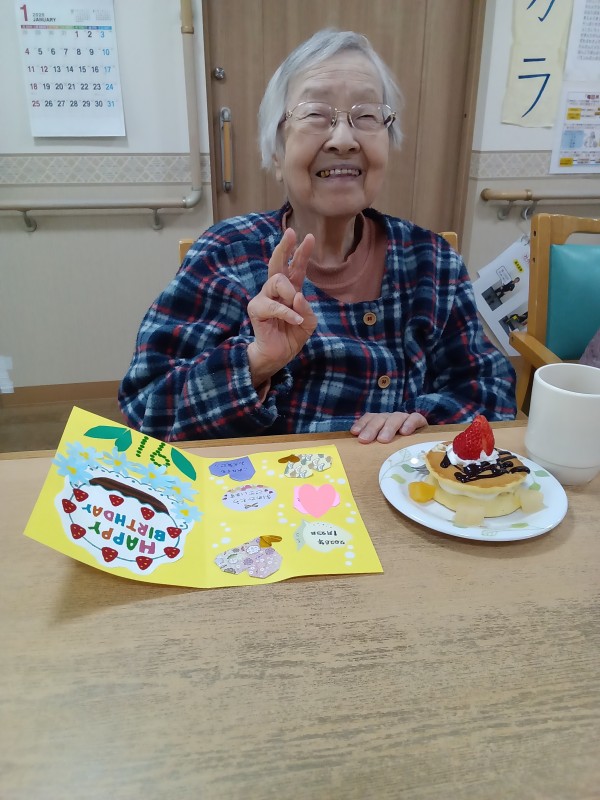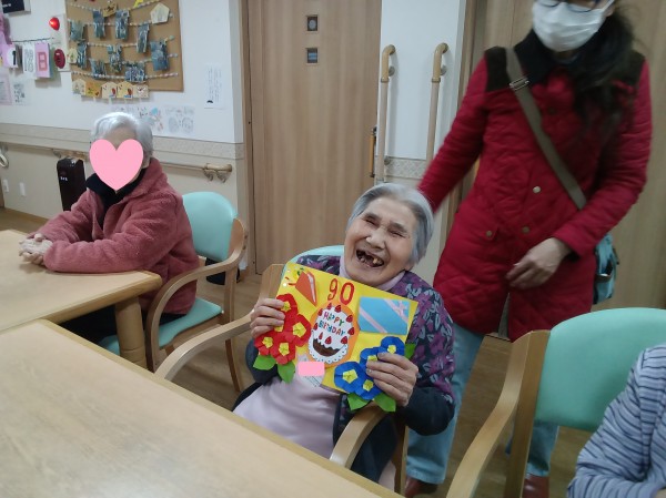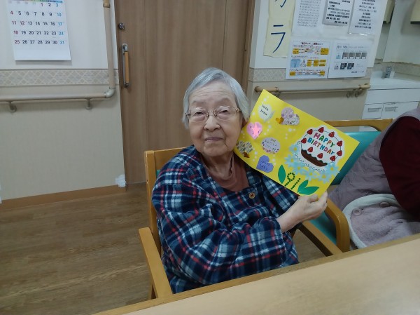 職員手作りの誕生日カードをお渡しすると、とても喜んで下さいました。