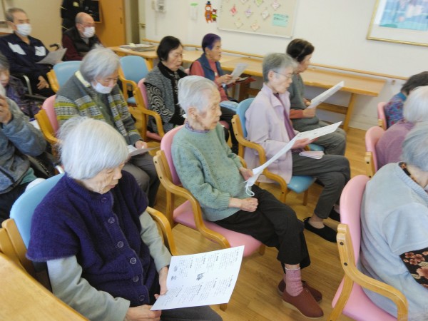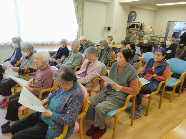 脳トレを交えながら『荒城の月』や『さがんかの宿』、『幸せなら手をたたこう』など、