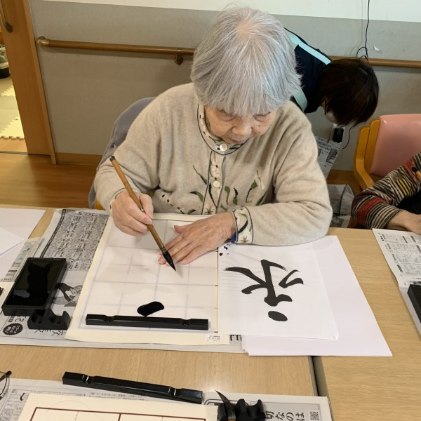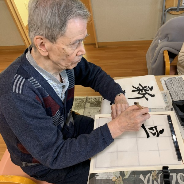 1月14日に今年初めての書初めを行ないました。