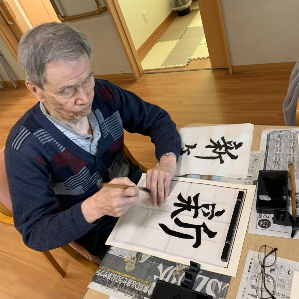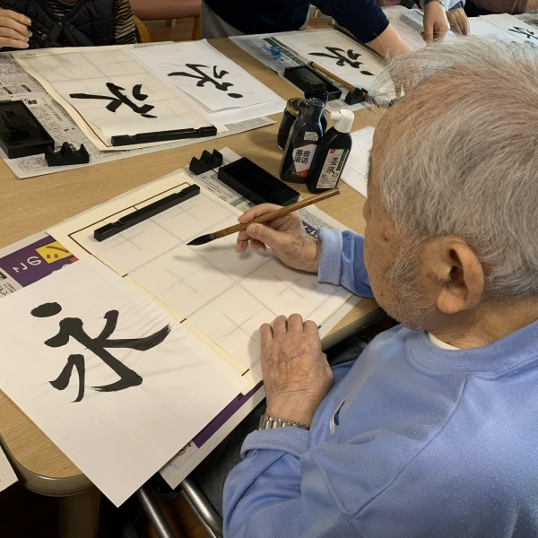 習字の先生がおいで下さり、皆さん真剣に書かれていました。