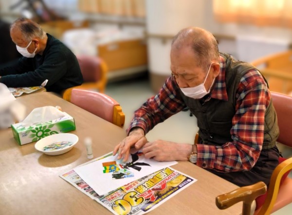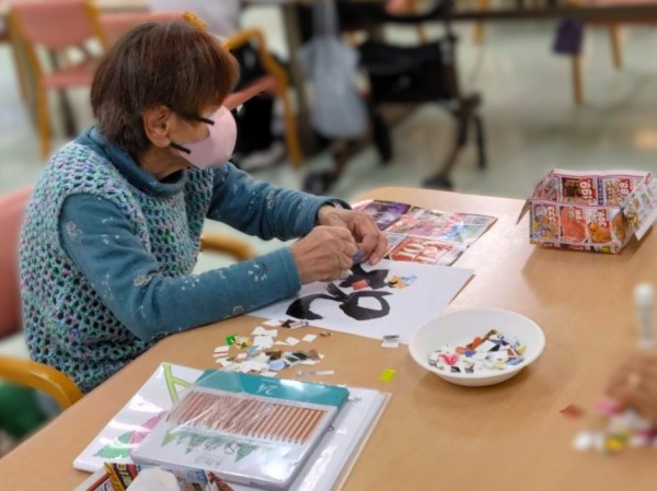 1つ選んでいただき、文字部分に色とりどりで質も様々な紙を貼り付けていただきました。