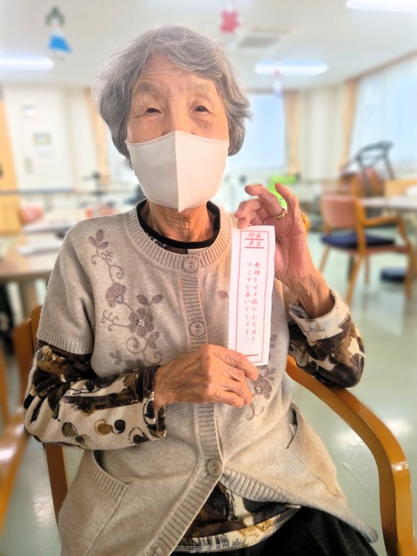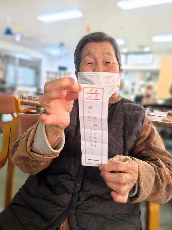 お御籤を引いて頂き、最後にお正月の唄を皆さんと一緒に合唱しました。