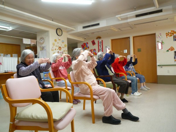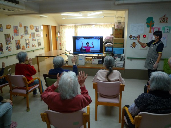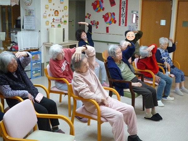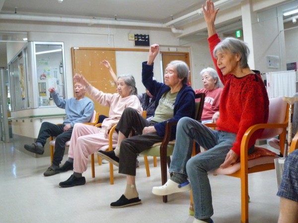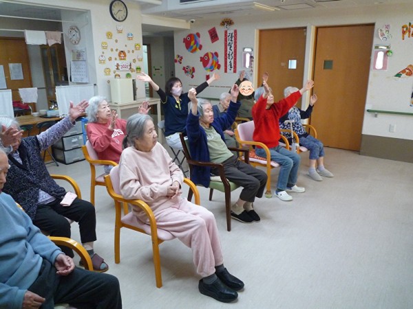「元気な人は大きな丸を作って下さい。」と話すと…。