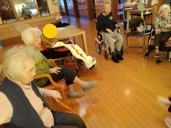 ある晴れた日、スタッフが先生となり体操レクリエーションを行いました♪
