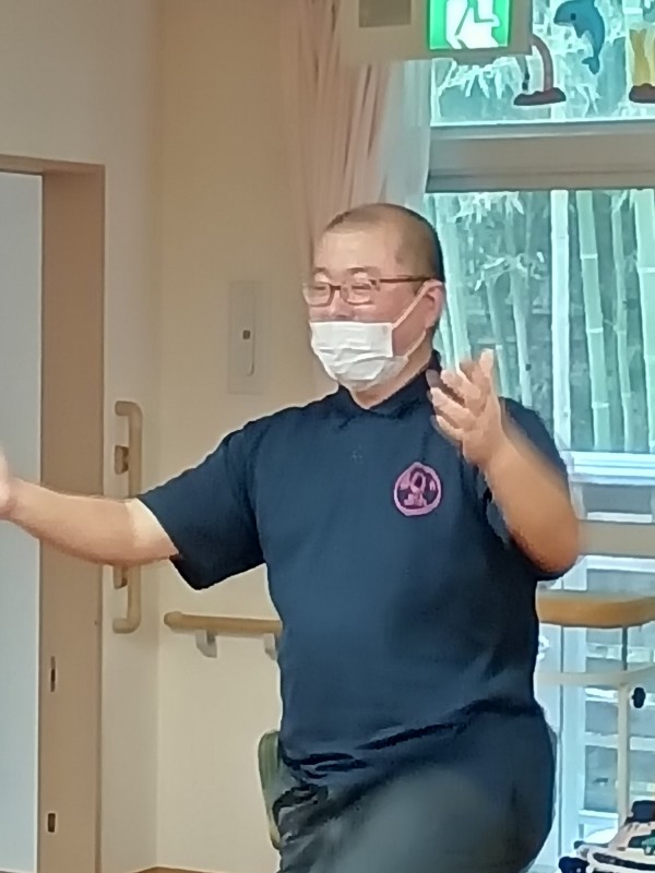 身体を動かしながら「今日も頑張りましたね」と
