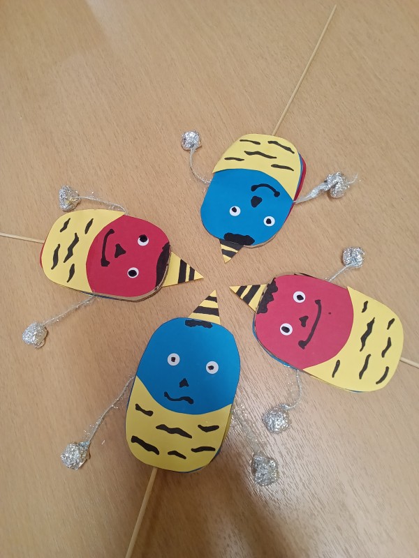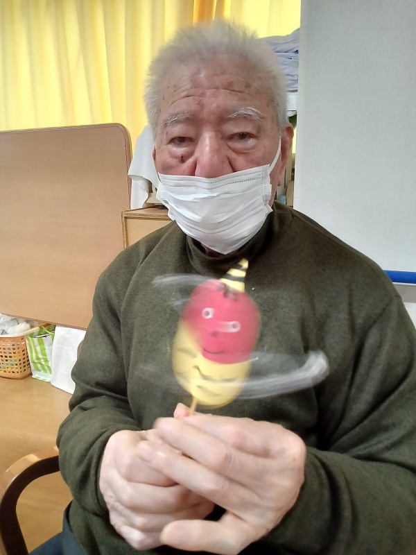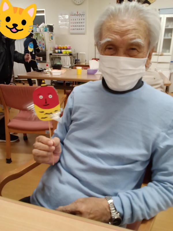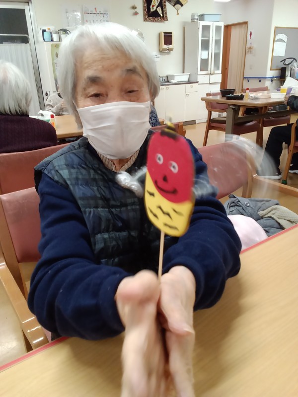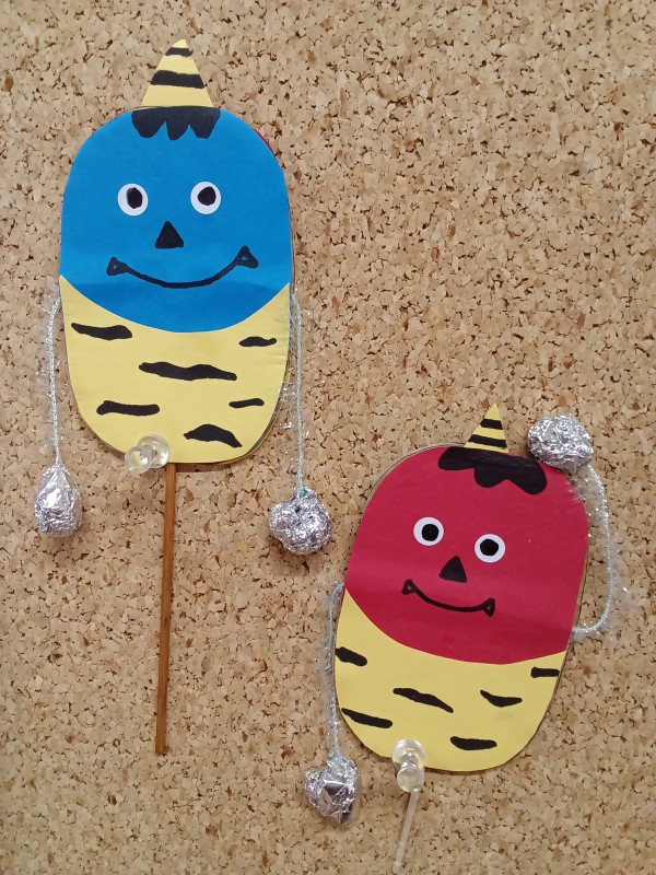 来月の節分にちなんで、「鬼のでんでん太鼓」を作りました(^O^)/