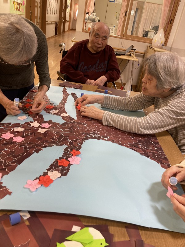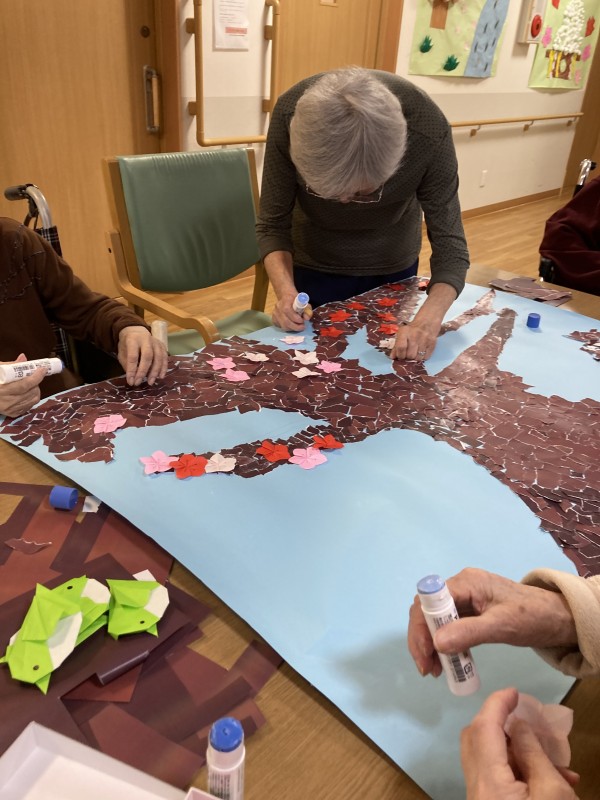 木が完成したら折紙で折った梅とウグイスを貼って完成です!