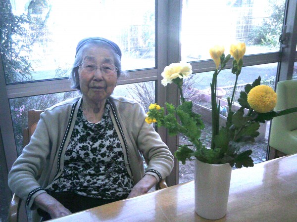 今日はご家族様がお花の差し入れがありました。 菜の花やすいせんや菊の黄色いお花でまとめてありました。 心が落ち着くようにとのことでした!!