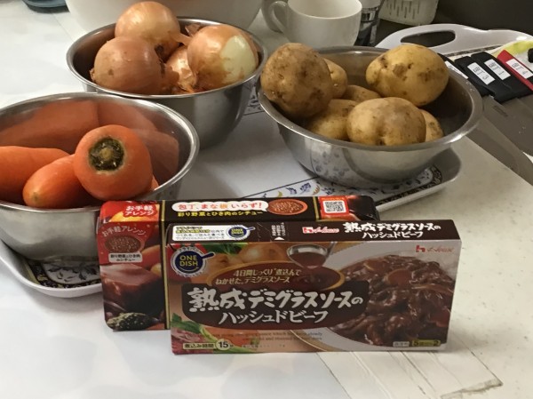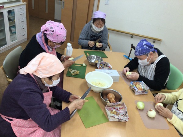 タマネギは皮を剥く所からお手伝いをお願いしまして…!!