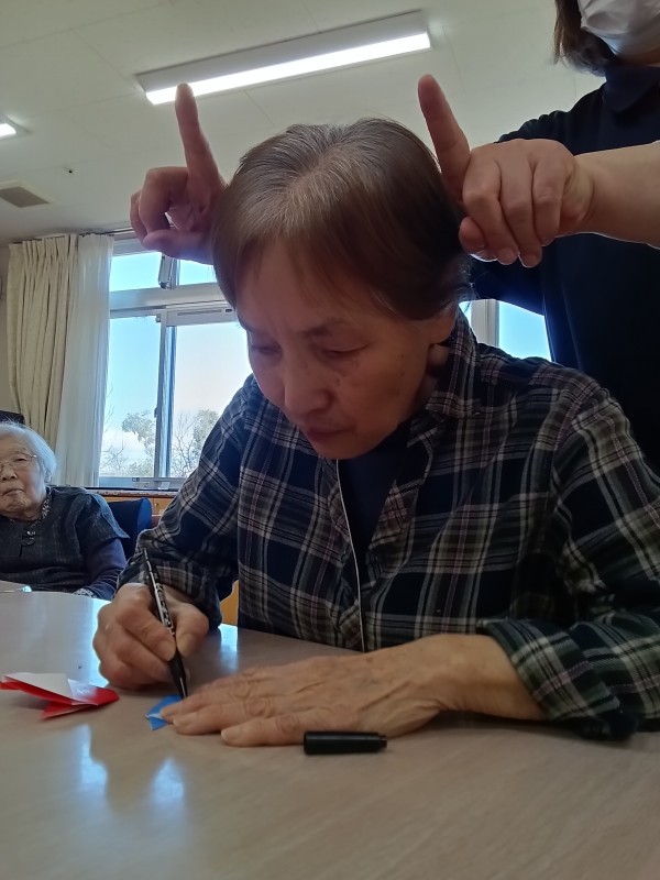 2月の節分の日に向けての製作を皆様で行いました。