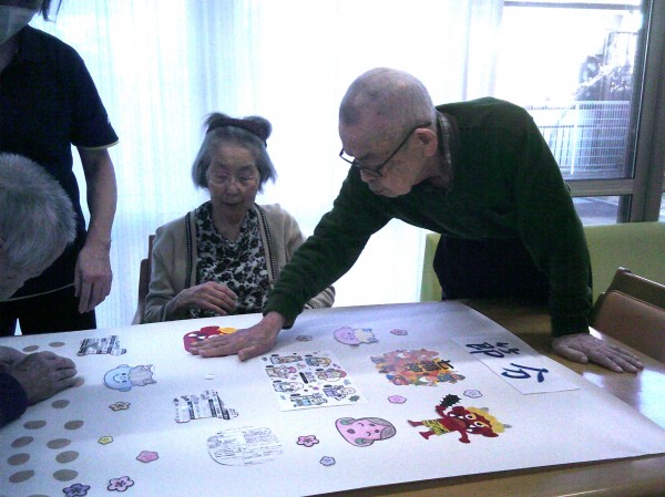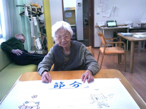 節分の向けての貼り絵を行っているご様子です( ^ω^)・・・ 『鬼は外・・・』ってやったわね?と話されていました(*^_^*)