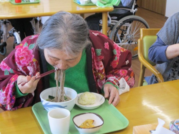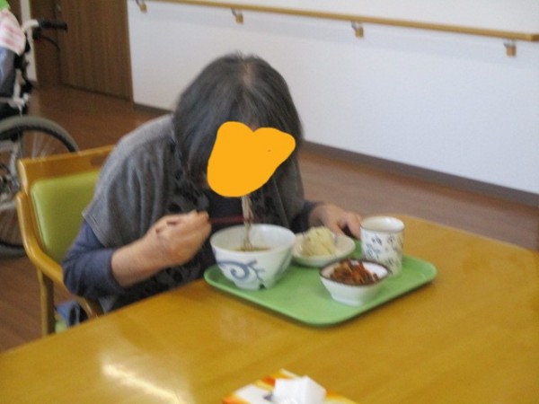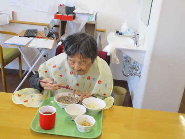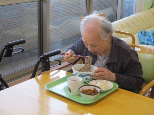 昼食のメニュー:たぬきそば・おにぎり????・煮物です!! おそば! 珍しいわね? と仰られておりました。