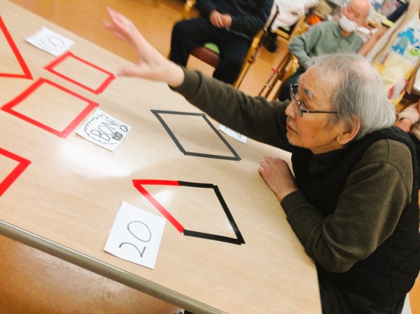 今回はテーブル上にテープを貼り、その中に入れば点数が入るルールになります