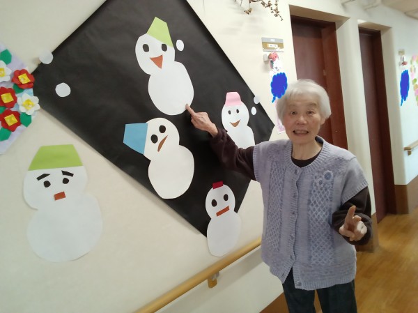 2階ご利用者様に雪だるま製作をしていただきました。
