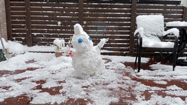 スタッフがテラスで雪だるまを作りました ♥