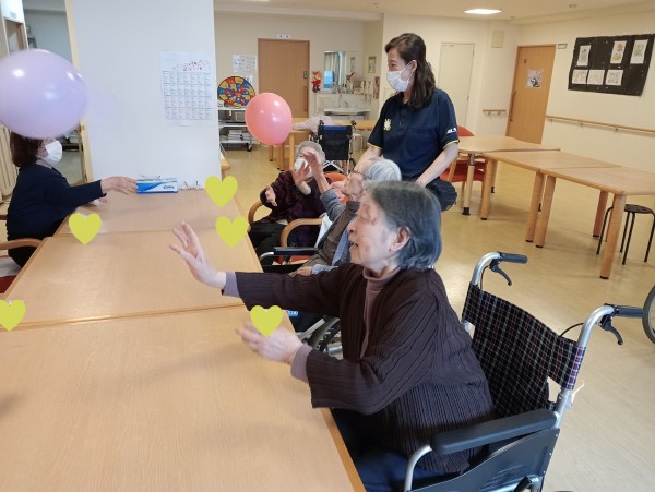 本日は風船バレーを開催!夢中になってくださっている様子をご紹介します!