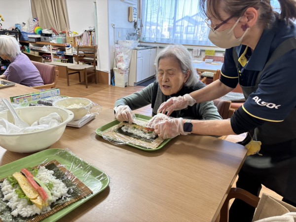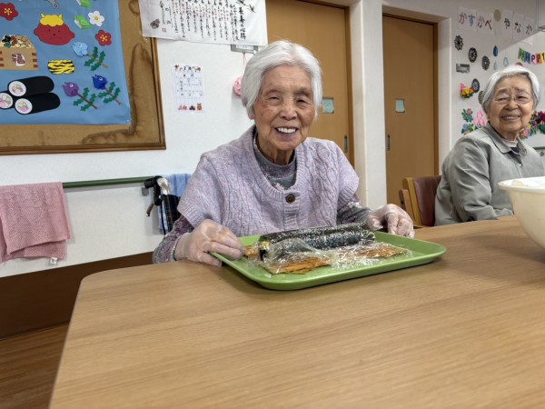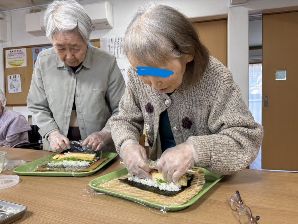 みんなで恵方巻づくりに挑戦!!