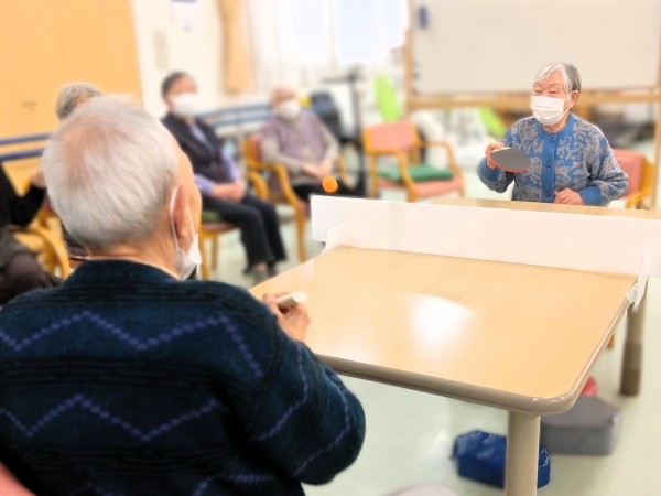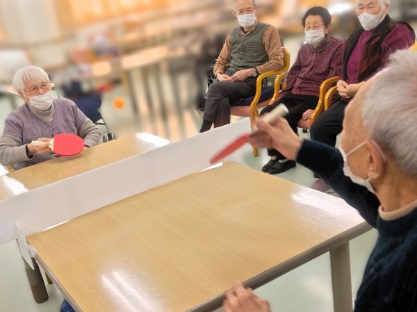 デイサービスでは色々なピンポンゲームを実施していますが本日は卓球!