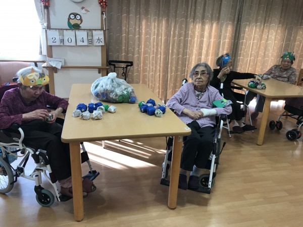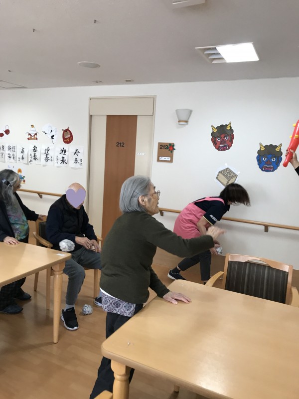 何個も玉を投げて、鬼が退散していきました!