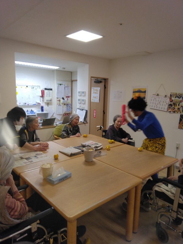 ご入居様が赤鬼・青鬼に豆を投げました。