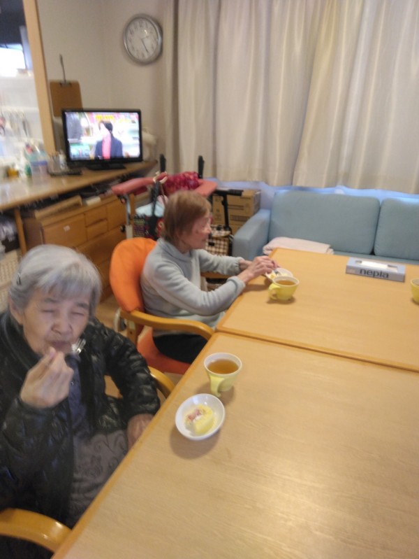 節分会が終わり、美味しいフルーツ特盛ロールケーキを召し上がりました(^^)v