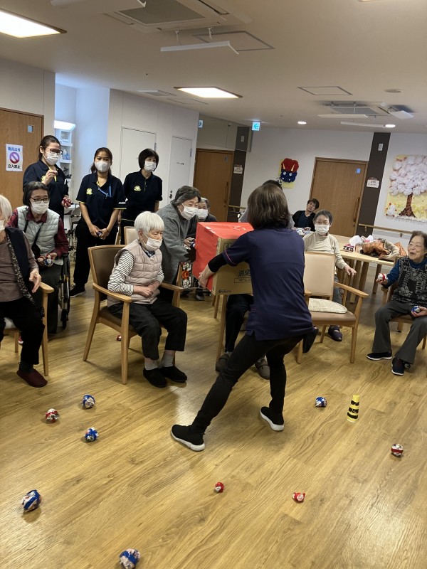 スタッフが受けに行く時もありましたけど、楽しんでいただけて良かったです。また来年も元気に豆まきしましょう。