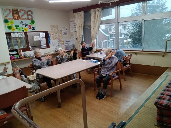 ご利用者様、DVDを観ながら毎日元気に体操していますヽ(^o^)丿
