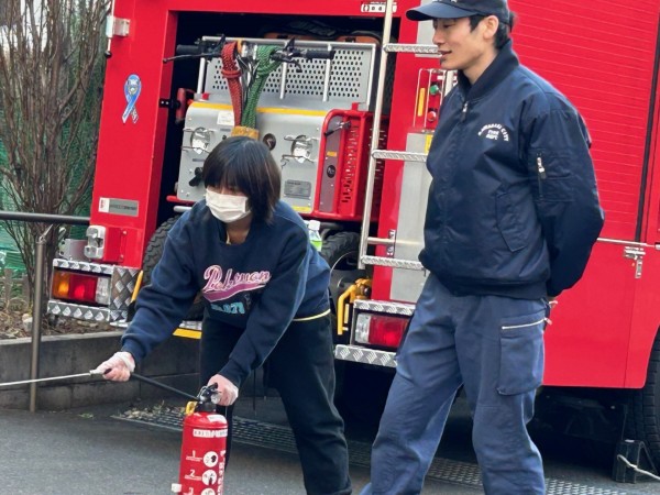 普段から消火器は目にしていますが、いざ消火を想定して操作してみると、想像以上に重さを感じ、実際に体験することの大切さを実感しました。私たち職員にとっても、非常に貴重な学びの時間となりました。