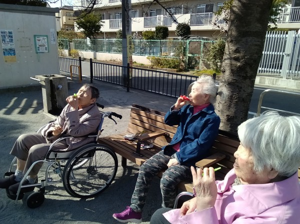 ホーム近くの公園に、みんなで出かけ、シャボン玉なんてやってみたちゃったりして:;(∩´﹏`∩);: