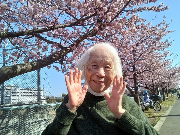 満開の桜を前に、表情もパッと華やいでいらしゃいました。