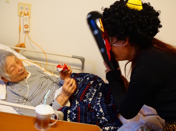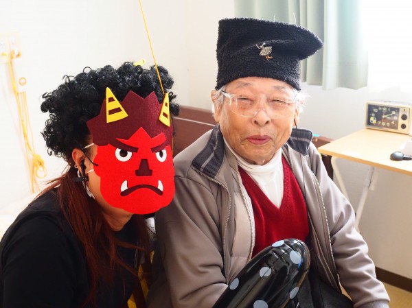 2月3日の節分は、ご利用者様に豆(紙のボール)を投げていただき