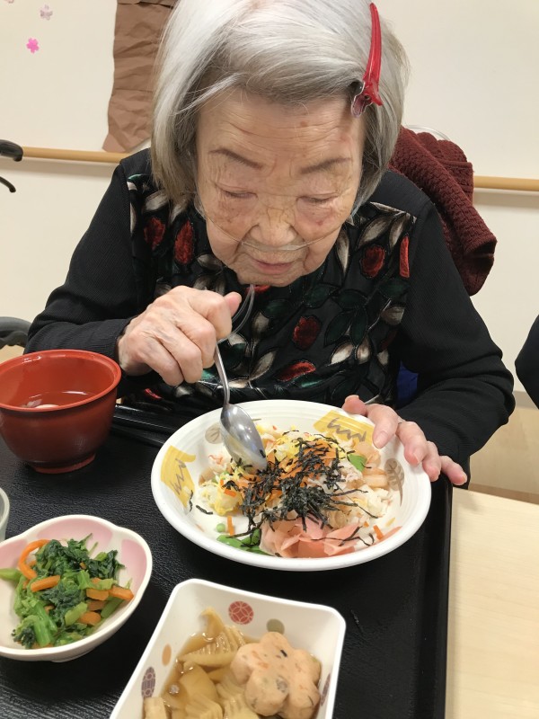 1階では7段飾りの立派なひな壇を飾りひな祭りをお祝いしました(^-^)