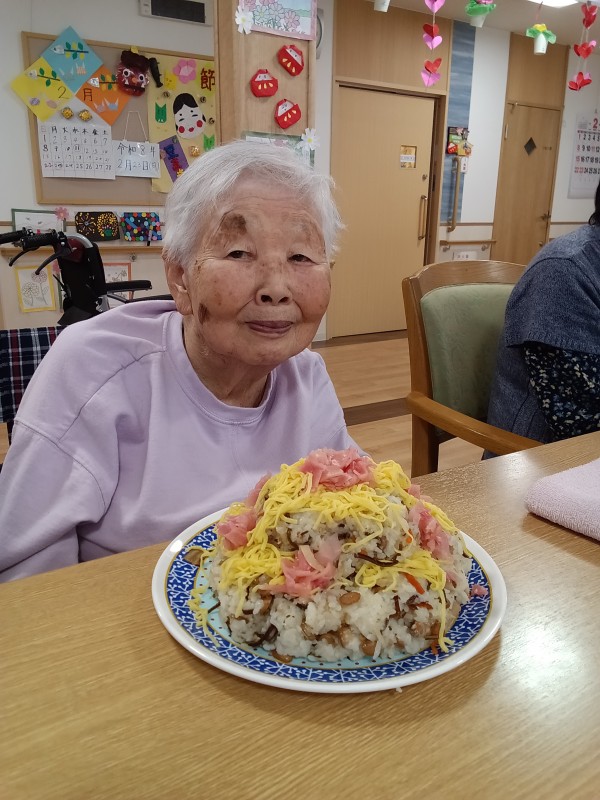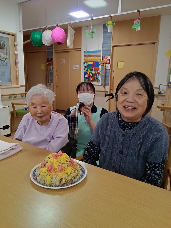 2月の終わり頃、2Uでは節分豆を使ってちらし寿司ケーキを作りました〜(^o^)v
