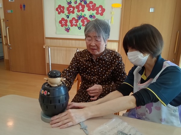 暖かな午後、「黒ひげ危機一髪」のゲームを楽しまれました。
