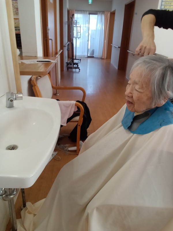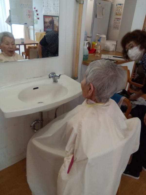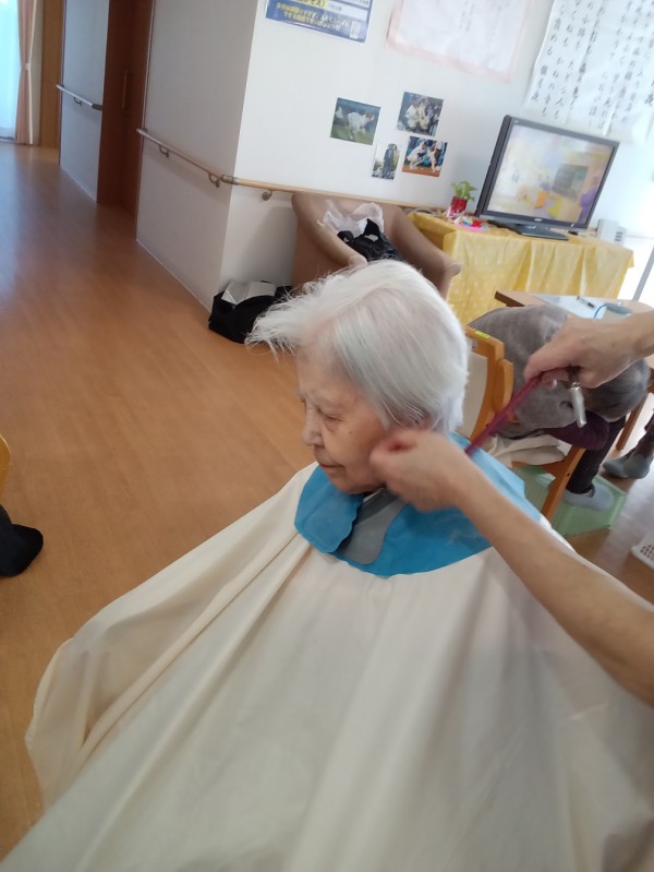 先日、ホームに訪問理美容の方に来ていただき、皆さまのヘアカットを行いました。
